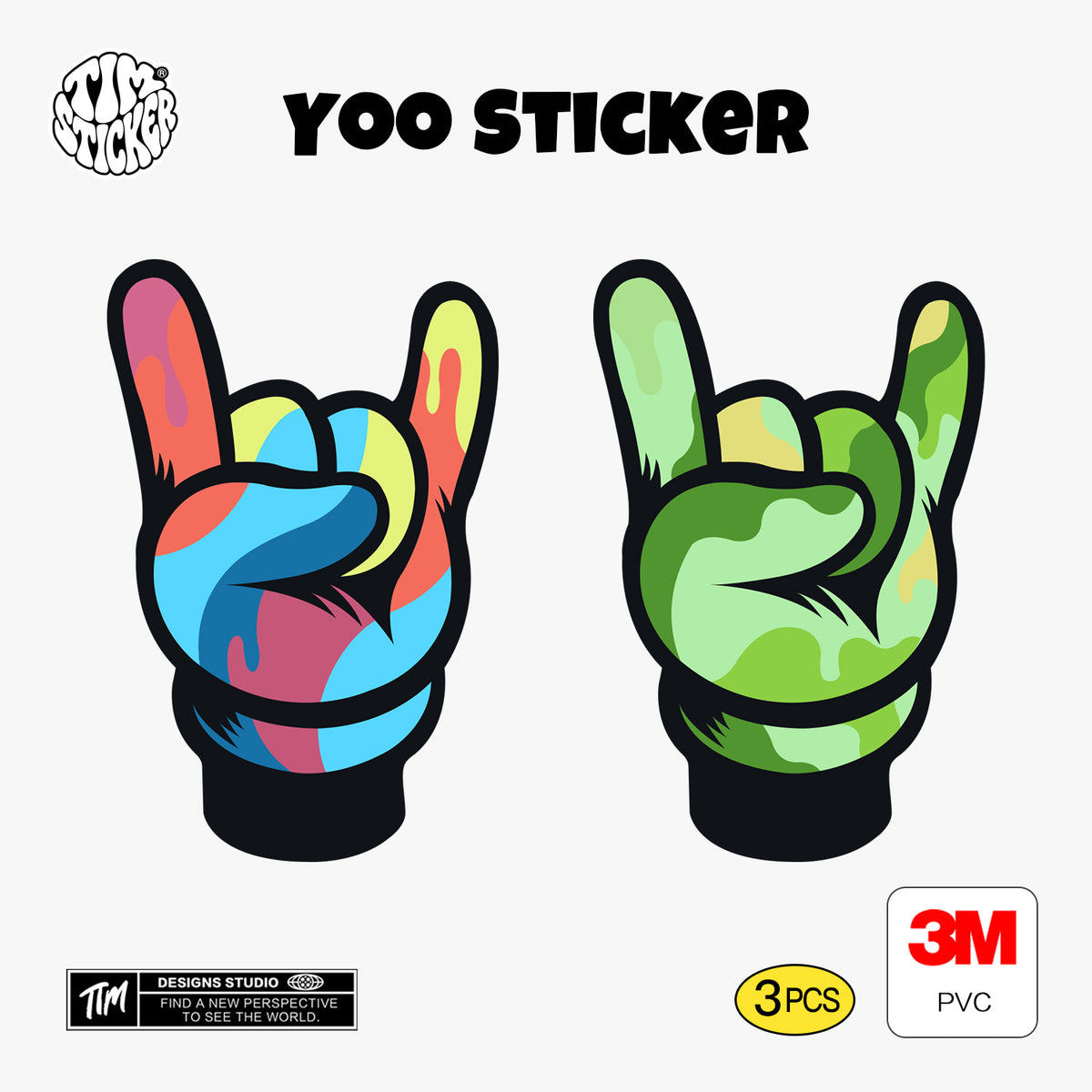 Yoo Graffiti Sticker Set, Trendy Cartoon Outdoor Style Sticker Decal for Laptop, Water Bottle, Car, Skateboard, 3 PCS, Not Reusable TIM STICKER®