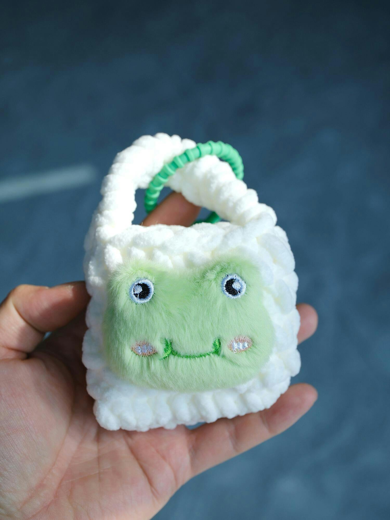 1.Core Selling Point. Cute Plush Bag Charm. This plush knitted animal bag charm adds a fun and playful accent to backpacks, purses, and tote bags.